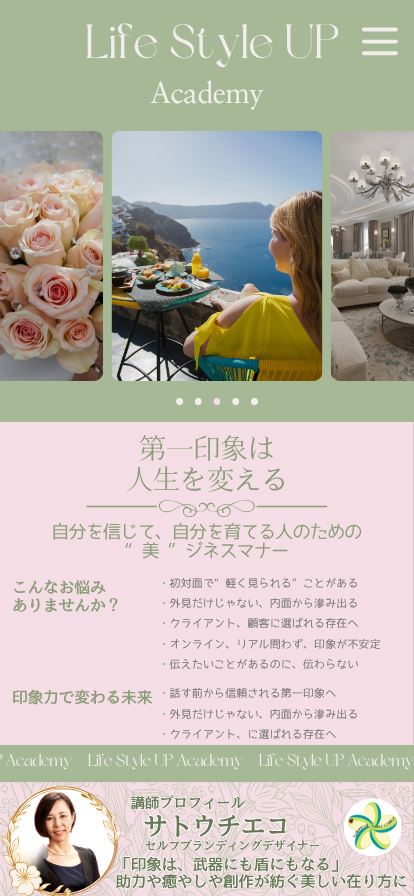 表面的な印象の良さではなく、誰もが持っている自分の強みを知り、価値として引き出し、自分にしかない印象力、ブレない自分軸を身につけます。